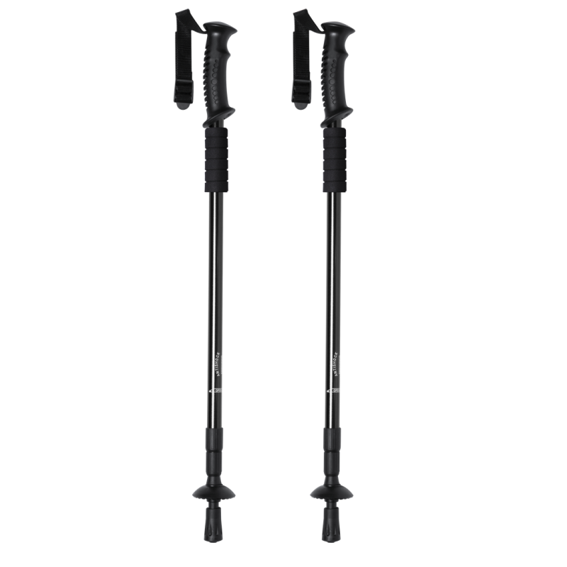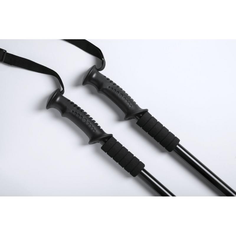Set de bastones deportivos plegables en resistente aluminio, con mecanismo de amortiguación y accesorio en suave espuma para descansar las manos. Con cómoda asa ergonómica, cinta de seguridad ajustable y accesorio para nieve. Superficie de contacto con el suelo reforzada. Presentado en bolsa de transporte con cinta para hombro. Bastones disponibles en 3 colores.
