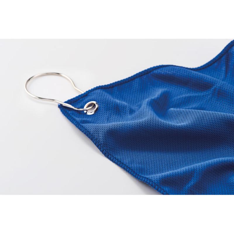 Toalla de golf de poliéster RPET con gancho de hierro para colgar. Tamaño de la toalla: 40x60cm.