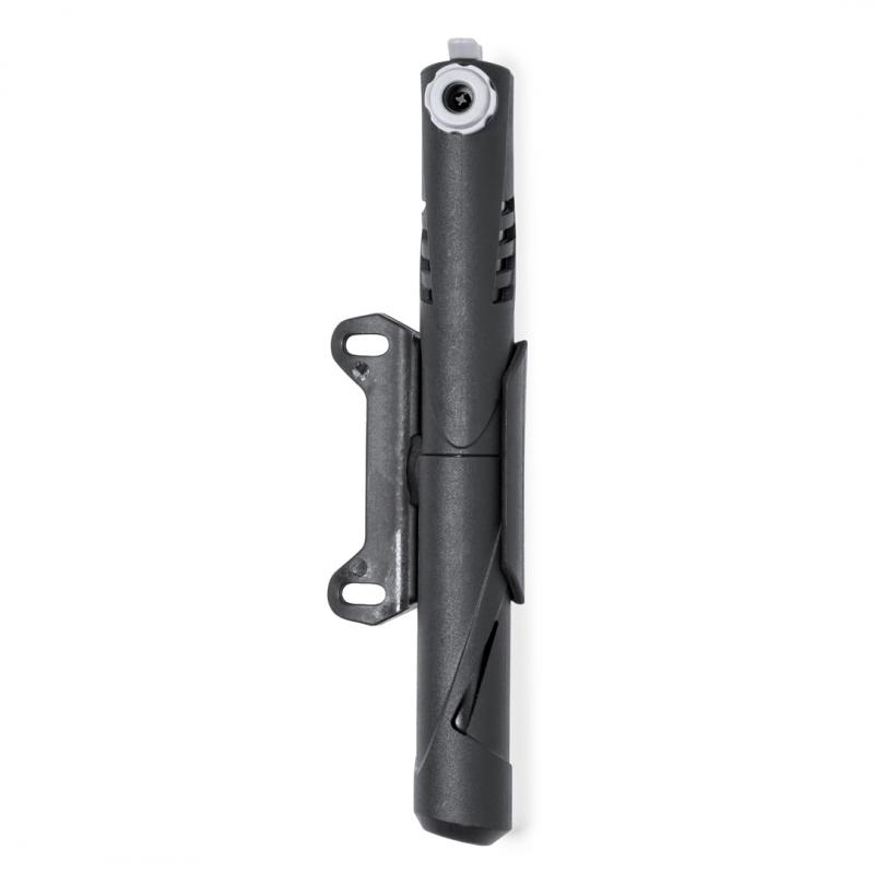 Práctica bomba para bicicleta, fabricada en resistente aluminio. De inflado manual y en tamaño reducido, con accesorio de acople válido para cualquier tipo de bicicleta.
