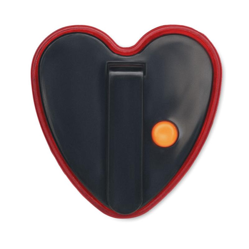 Luz roja reflectora en forma de corazón en ABS con clip trasero. Incluye 2 pilas recambiables LR44.Recipiente :