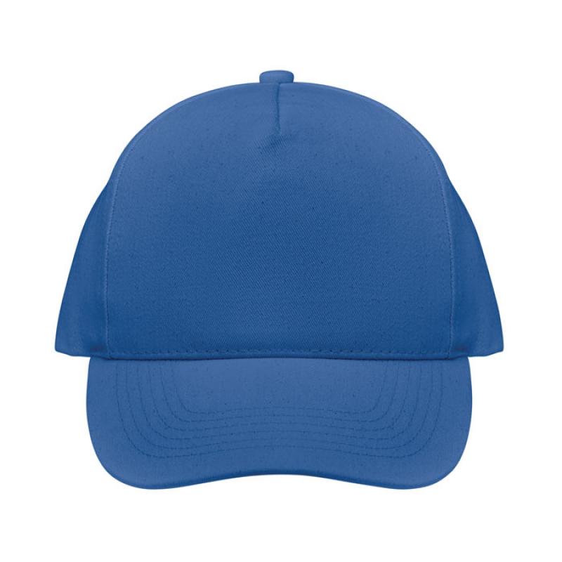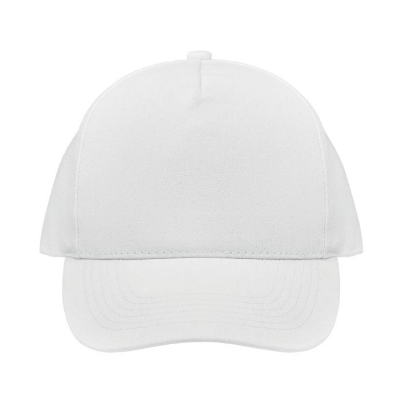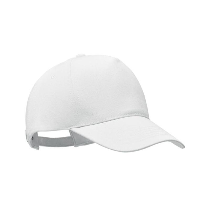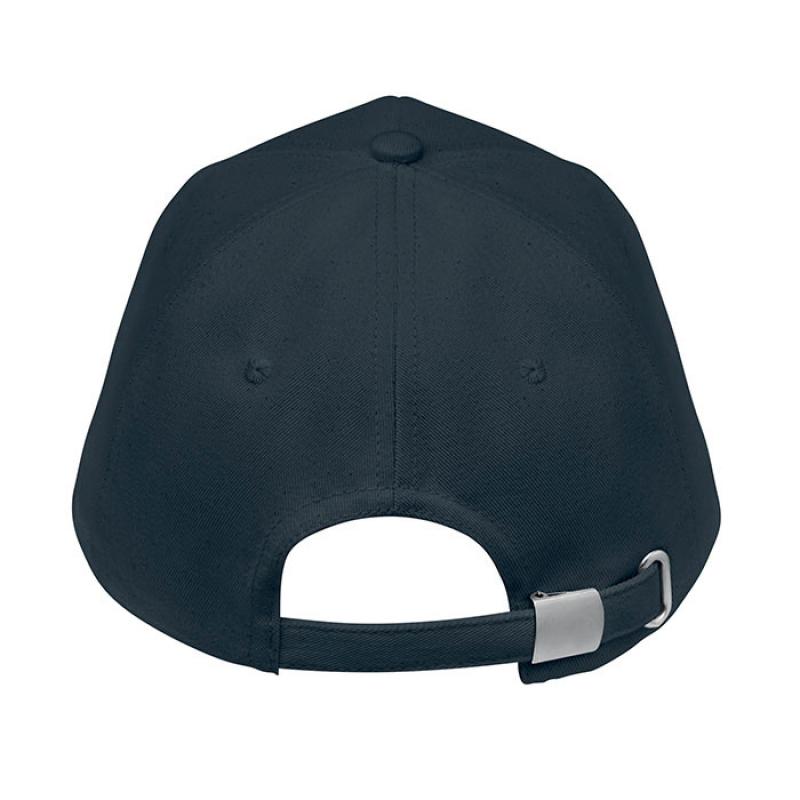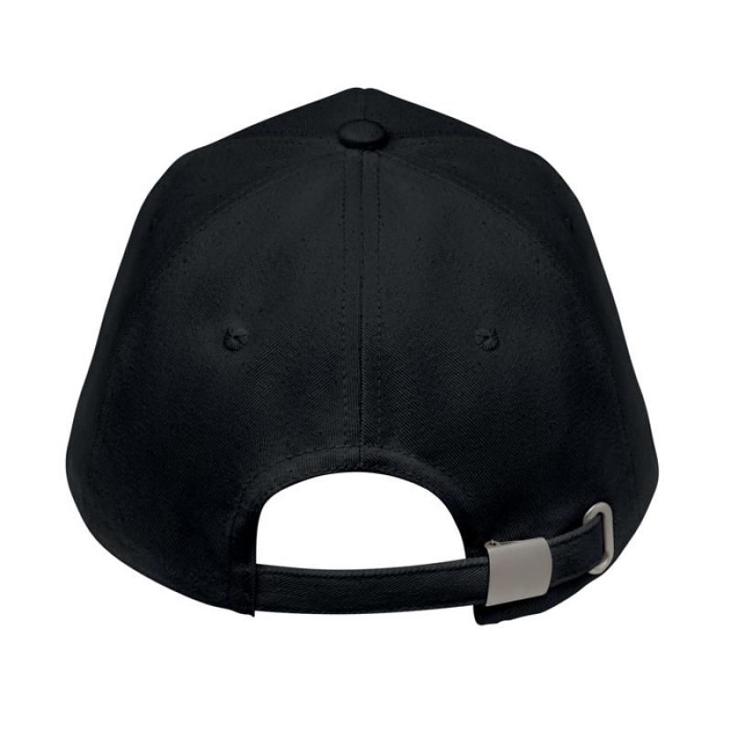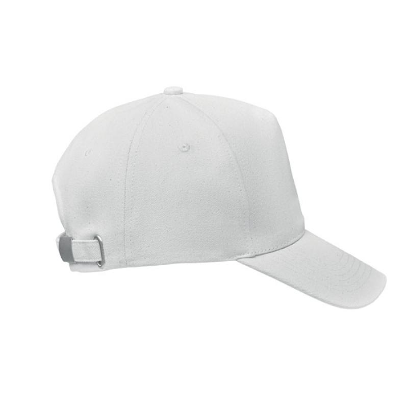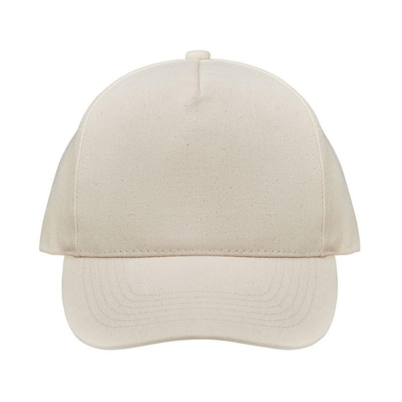 Gorra de béisbol de 5 paneles de algodón orgánico cepillado de 250 gr/m² con cierre ajustable con hebilla.