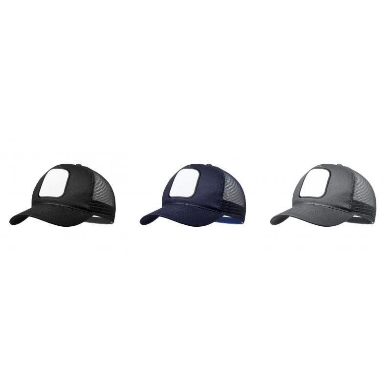 Gorra tipo trucker fabricada en resistente combinación de algodón y poliéster. Con parche frontal cosido especialmente diseñado para marcaje en sublimación. Redecilla y cierre ajustable de plástico a juego.