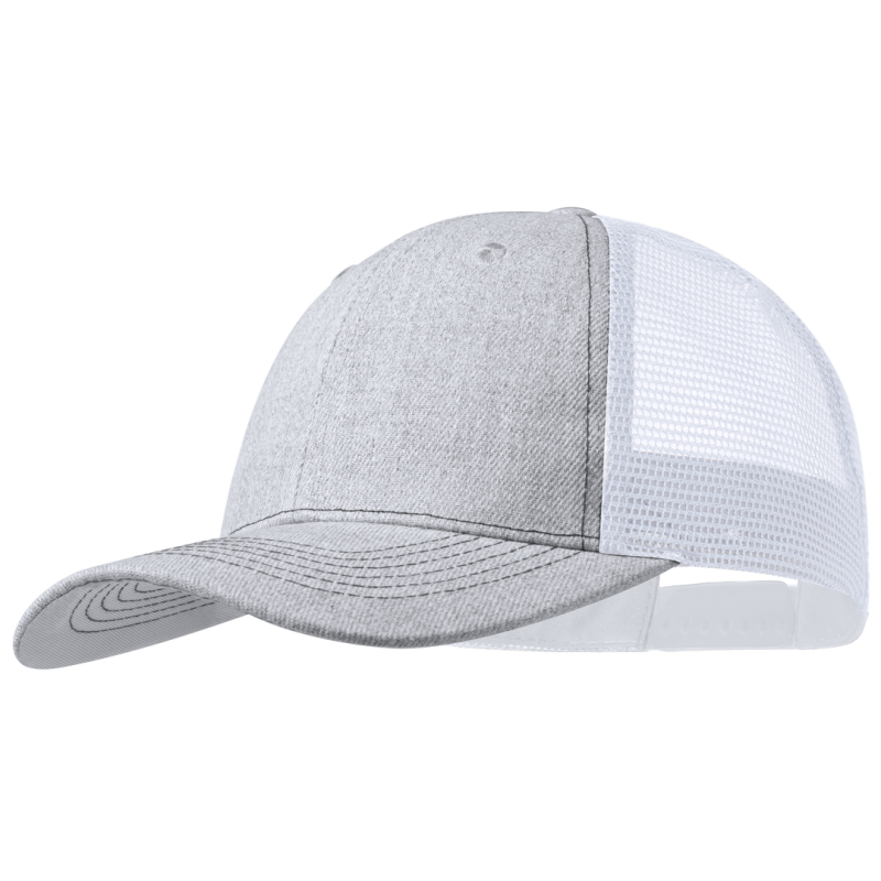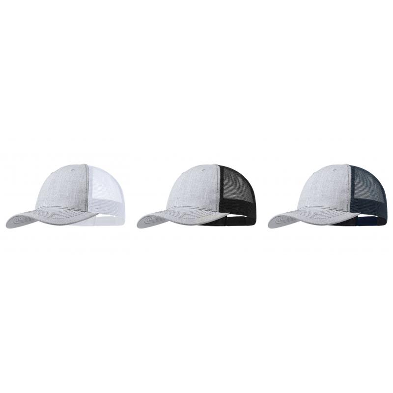 Gorra de 6 paneles en originales combinaciones bicolor. De poliéster, con tela de rejilla, orificios de ventilación frontales bordados y cierre ajustable de plástico.
