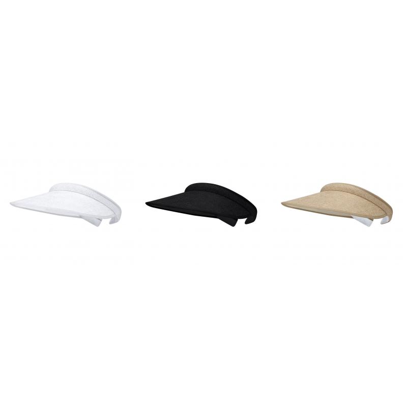 Visera de amplio sombraje, confeccionada en resistente poliéster con superficie recubierta de tela. Diseñada con ajuste de diadema abierta e interior acolchado con suave tejido rizado para mayor comodidad.