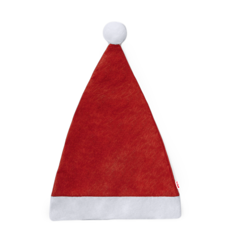Divertido gorro de Papá Noel fabricado en RPET con suave banda y pom pom de color blanco.El material RPET se elabora a partir de plástico reciclado, para así fomentar la reutilización de residuos plásticos y ayudar a la sostenibilidad del planeta.
