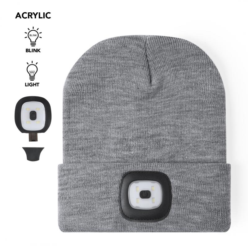 Gorro deportivo de doble capa con indicadores luminosos integrados que ofrecen 4 modos diferentes de iluminación LED. En suave y confortable material acrílico.
