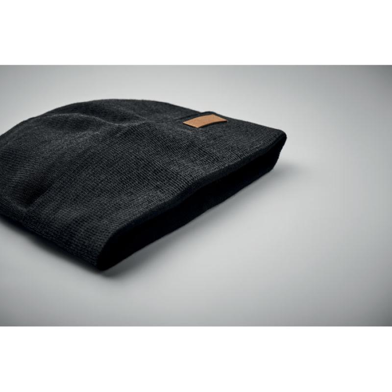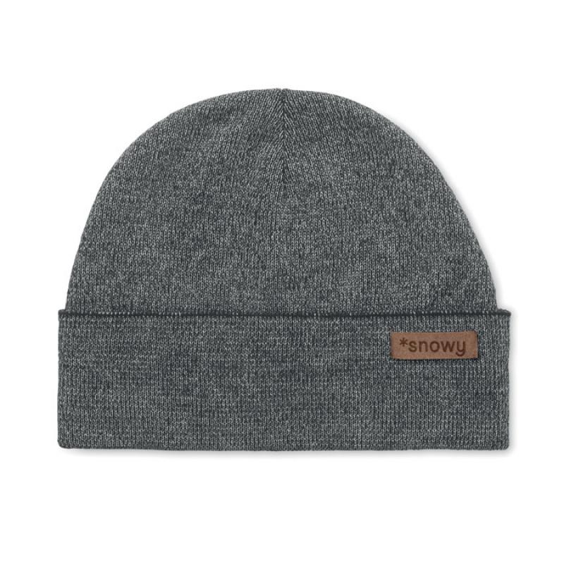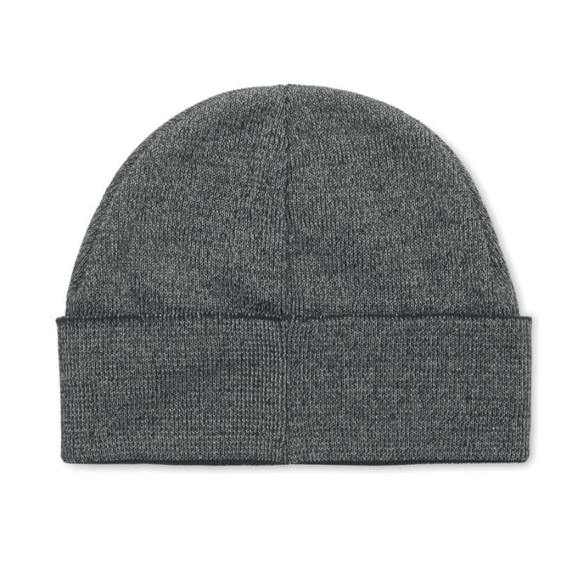 Gorro acrílico unisex de doble cara con cinta reflectante al 30% con etiqueta para zona de impresión. Sólo para uso promocional.