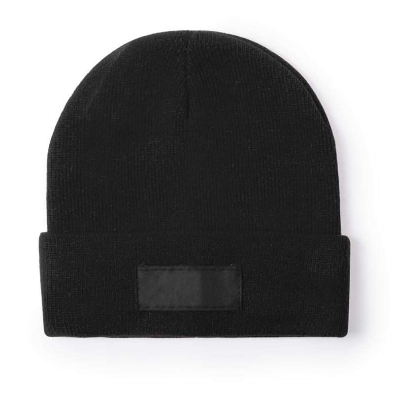 Suave y cálido gorro para niños fabricado en material acrílico. Elástico y de fácil ajuste, con dobladillo y etiqueta frontal a juego para marcaje.