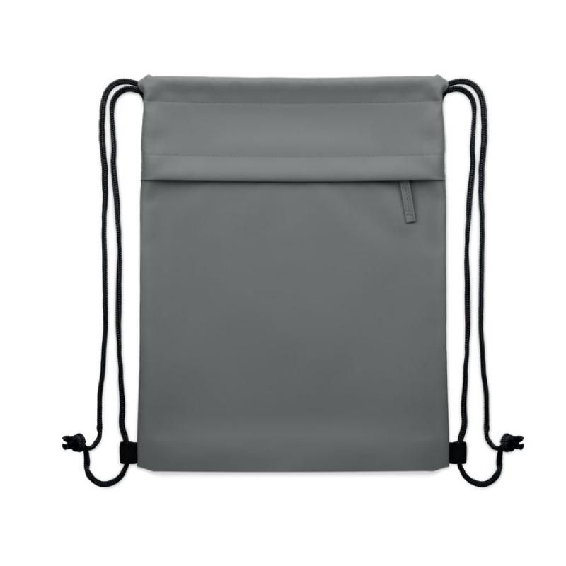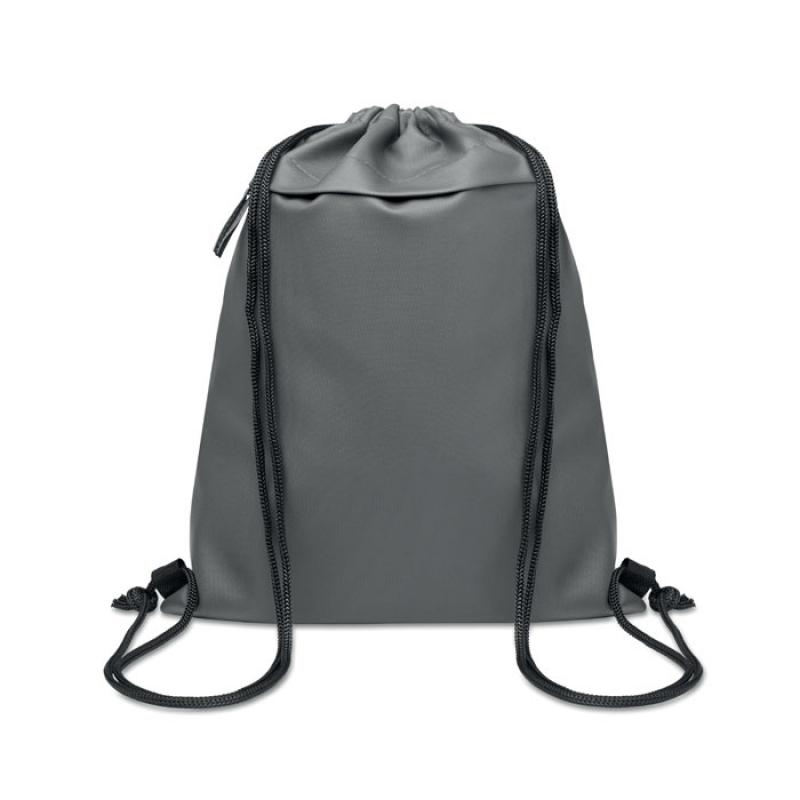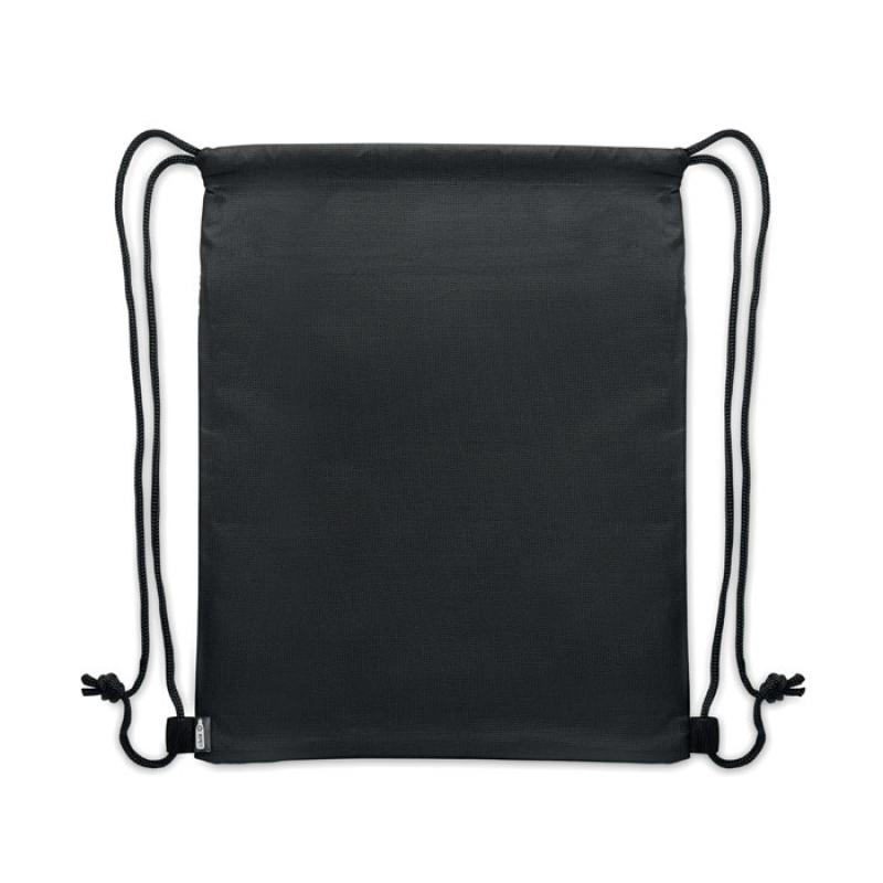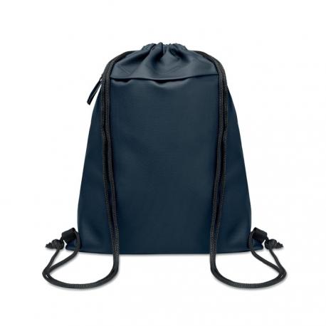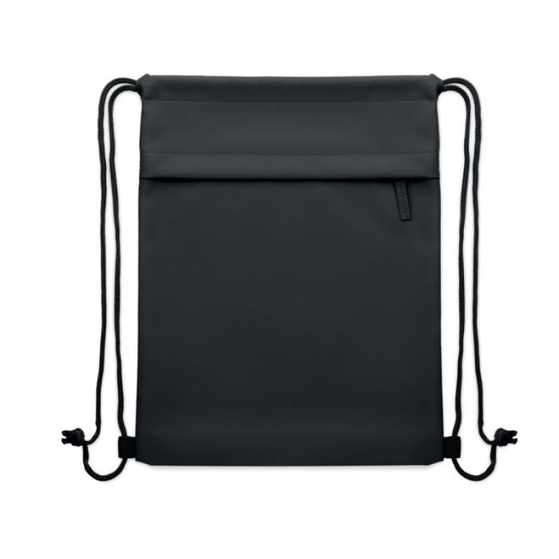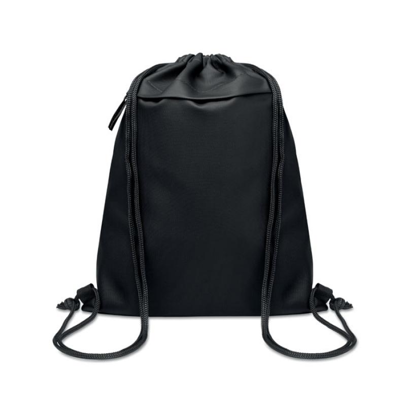 Bolsa de cuerdas de poliéster RPET 600D recubierto de PU y forro de poliéster RPET 190T. Bolsillo frontal con cremallera.Recipiente :