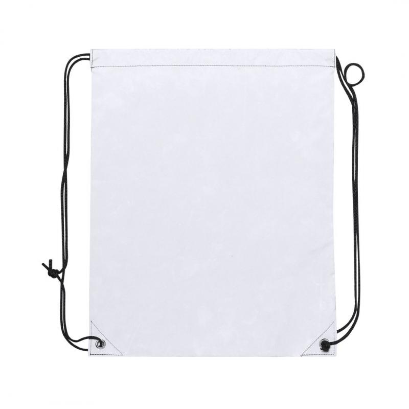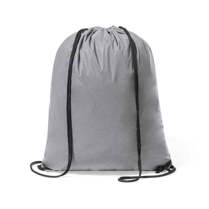 Mochila de cuerdas de suave poliéster 210T. Fabricada empleando tejido con gran capacidad para reflejar intensamente la luz, gracias a millones de pigmentos reflectantes y basándose en el principio de la retro-reflexión de la luz, una propiedad de visibilidad nocturna que consiste en la refracción de la luz hacia la fuente de origen de la misma. Con cuerdas autocierre en color negro y argollas metálicas. Resistencia hasta 7kg de peso y resistente al agua.