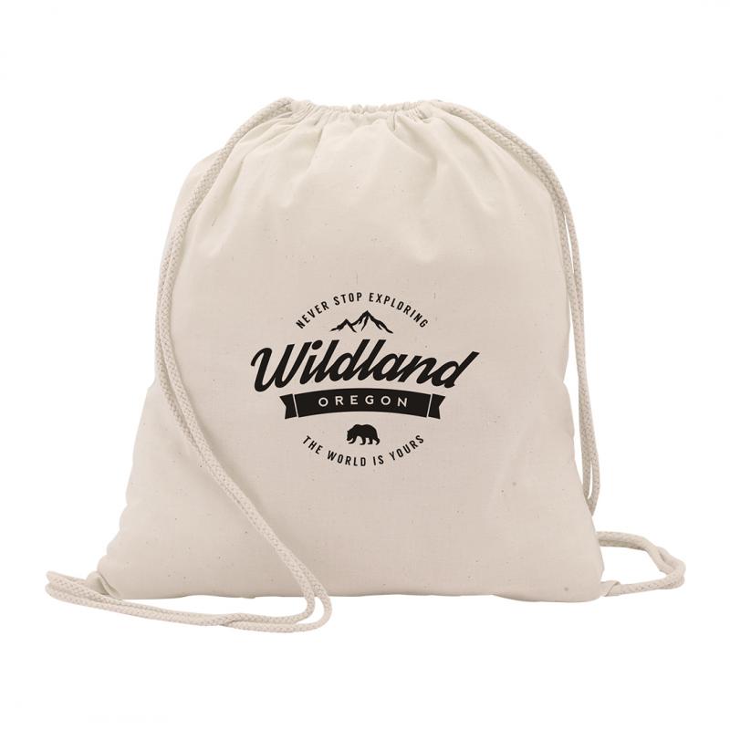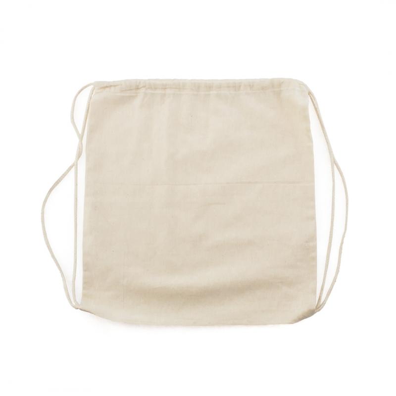 Mochila de cuerdas de línea nature. Fabricada en 100% algodón de 100g/m2 en acabado suave tacto de color natural. Compartimento con cordones en algodón.