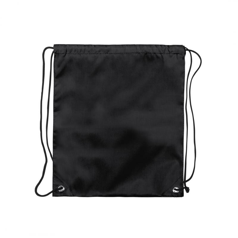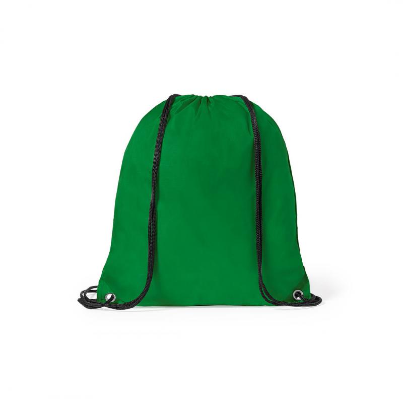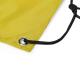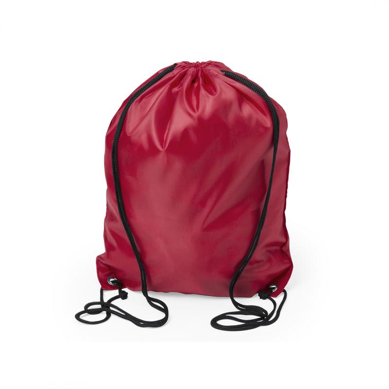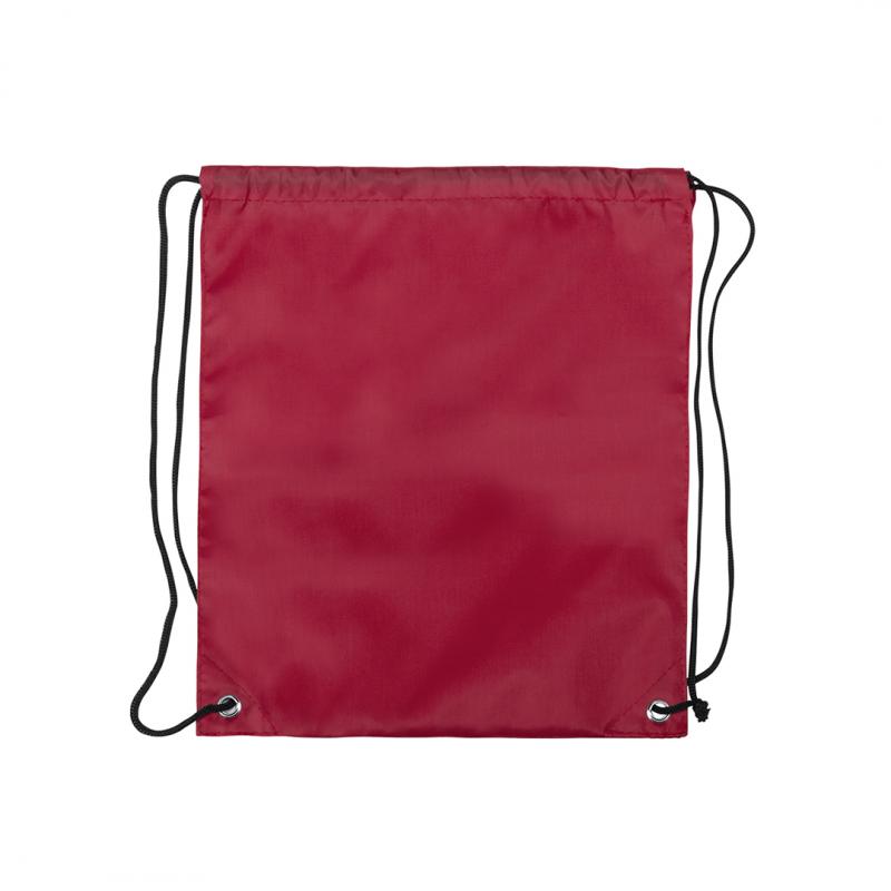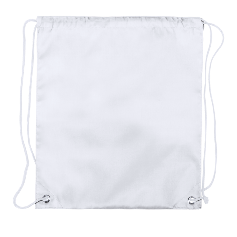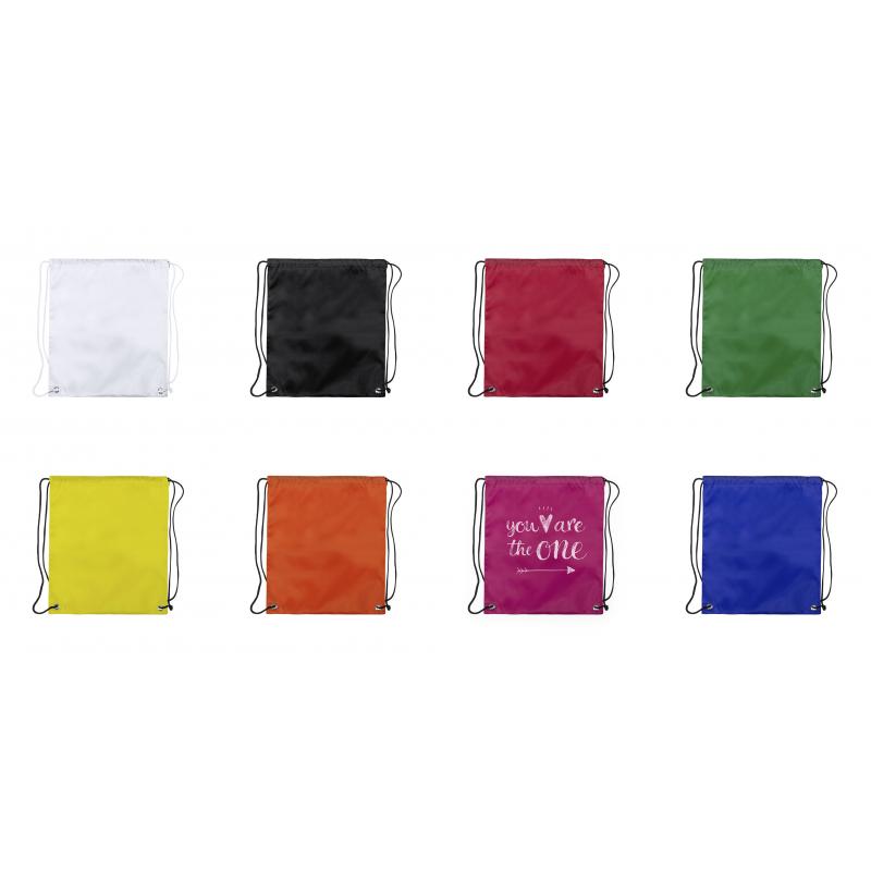 Mochila de cuerdas para niño en suave poliéster 210D de vivos colores. Con cuerdas autocierre en color negro y esquinas con argollas metálicas de refuerzo.
