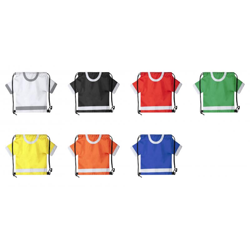 Original y divertida mochila de cuerdas para adulto en forma de camiseta. En suave poliéster 210D, con cuerdas autocierre en color negro y esquinas reforzadas. disponible en variada gama de colores intensos.