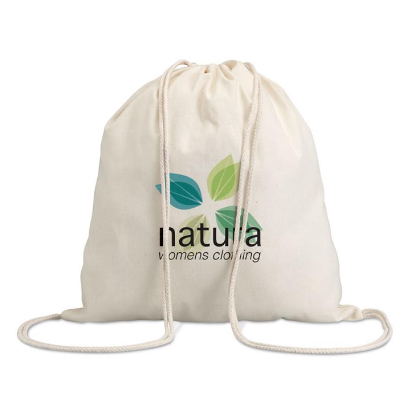 Mochila de 100% algodón. 100 g/m2. Producido bajo certificado estándar para controlar el uso de sustancias nocivas en textil.