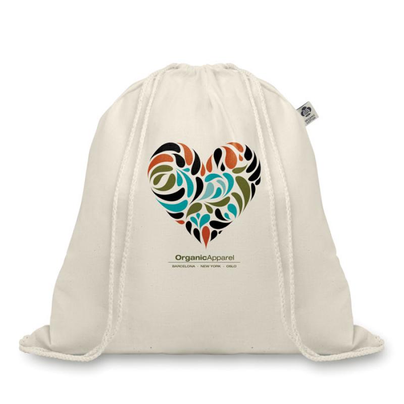 Mochila de cuerdas en algodón orgánico 105 gr/m². Hecho de algodón orgánico producido bajo etiqueta certificada.