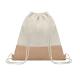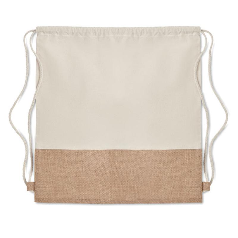 Bolsa de cuerdas en sarga de algodón 160 gr/m² y yute. Producido bajo certificado estándar para controlar el uso de sustancias nocivas en textil.