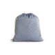Bolso tipo mochila fabricado con algodón reciclado (140 g/m²). Incluye bolsillo frontal con cierre de cremallera y asas de cuerdas de algodón
