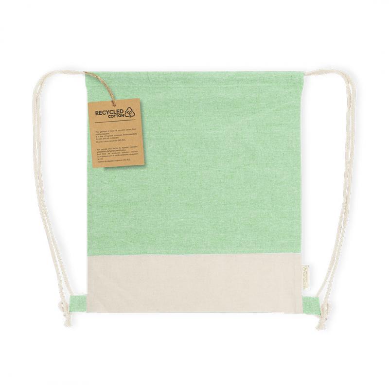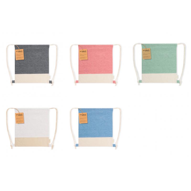 Mochila de cuerdas confeccionada en material 100% algodón reciclado de 120 g/m2. Las cuerdas de autocierre también están fabricadas en algodón con argollas de tela. La base presenta un color natural a juego con las cuerdas, con el logotipo eco visible en la etiqueta lateral. Disponible en una variada gama de colores nature. Resistencia hasta 6kg de peso.