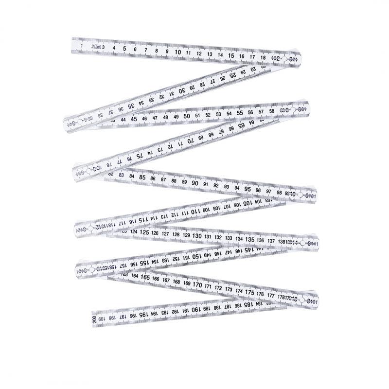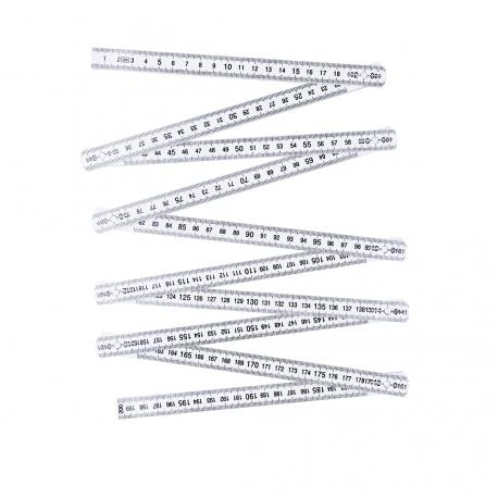 Regla plegable de 2 metros en resistente fibra de vidrio. Con escala en centímetros de color negro visible por ambas caras. Con posiciones posiciones ajustables a 90º, 180º y 270º para mayor versatilidad.