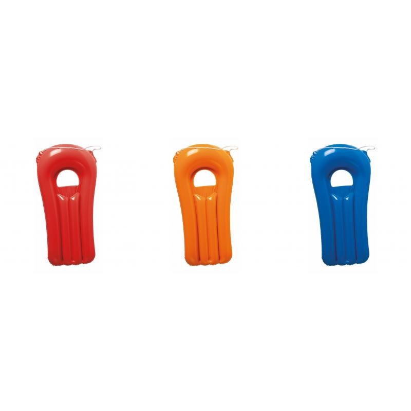 Original colchoneta inflable de PVC con ventana transparente y cordón de transporte en vivos colores.