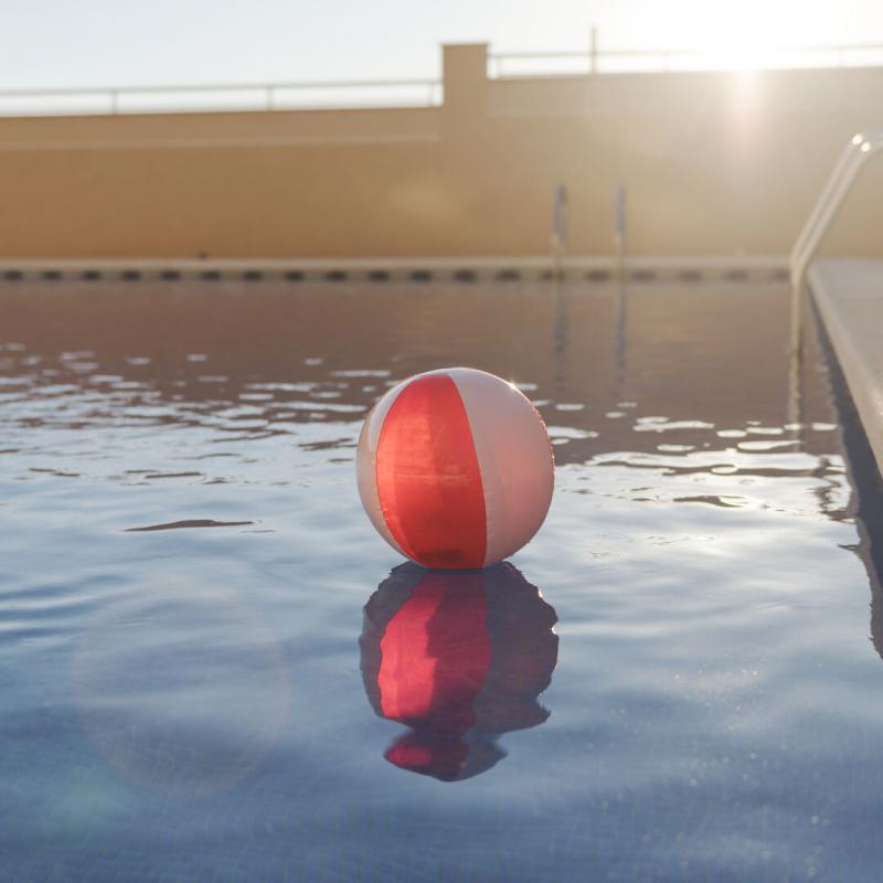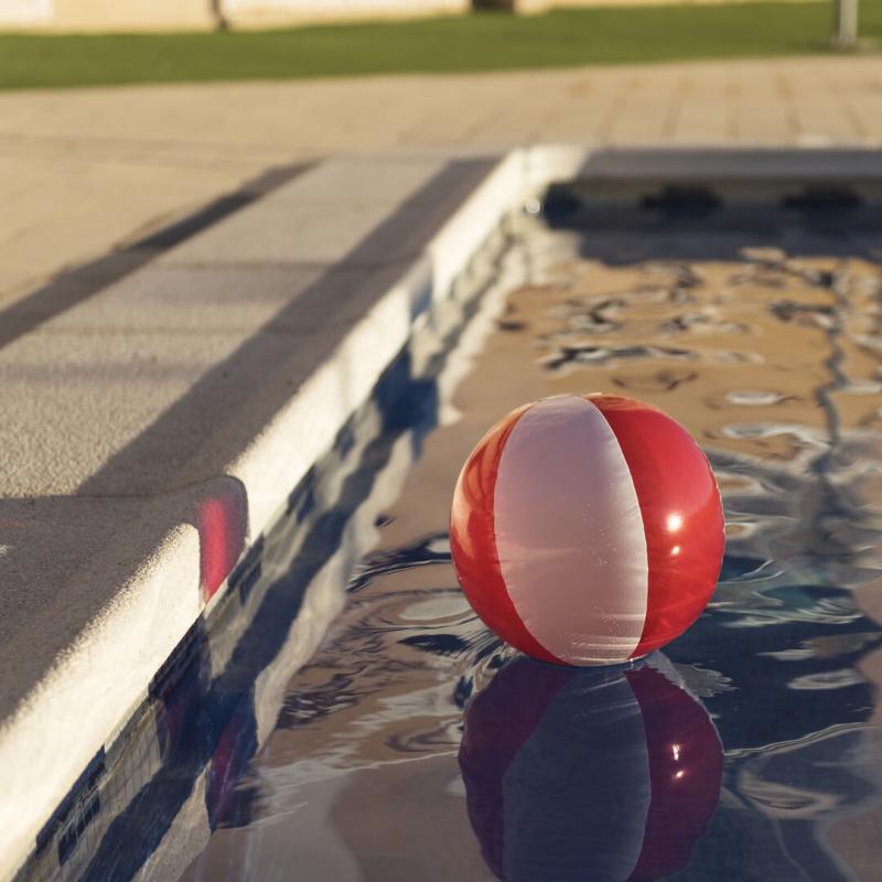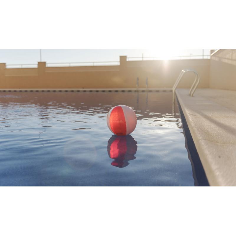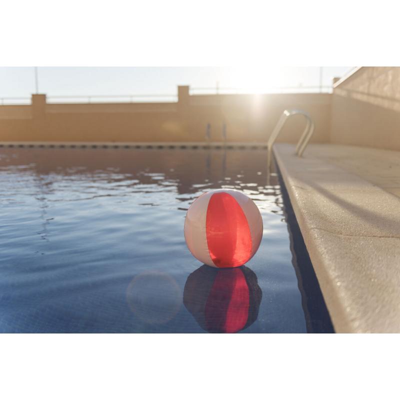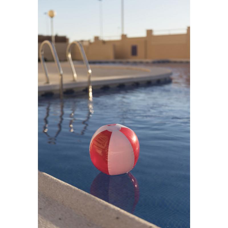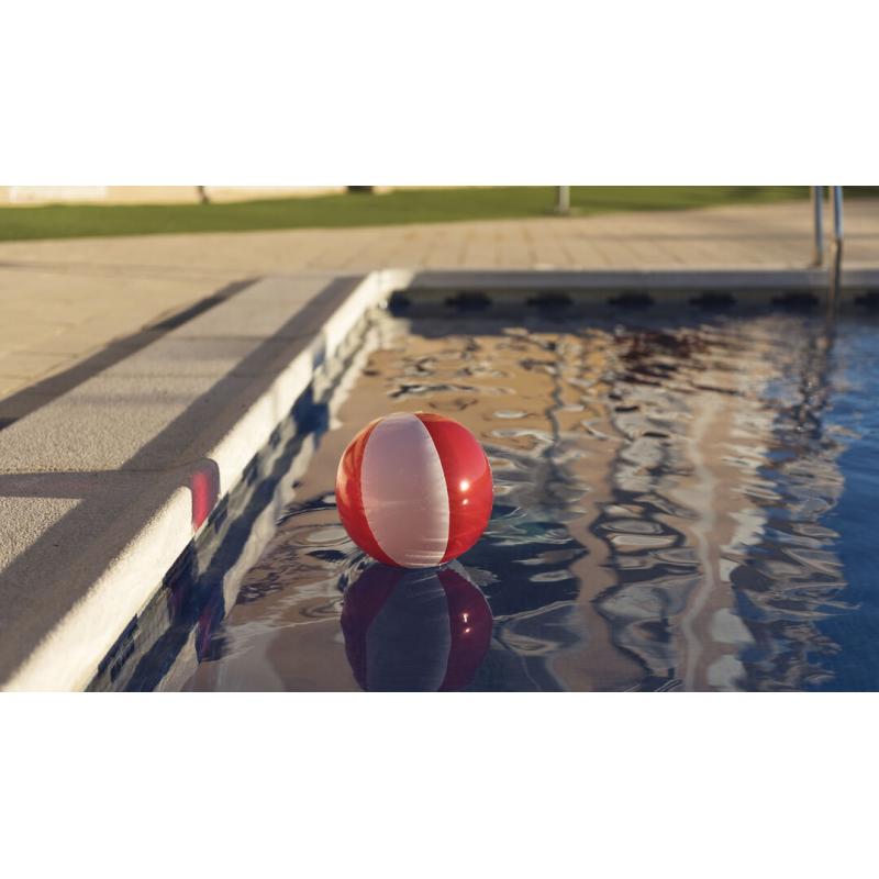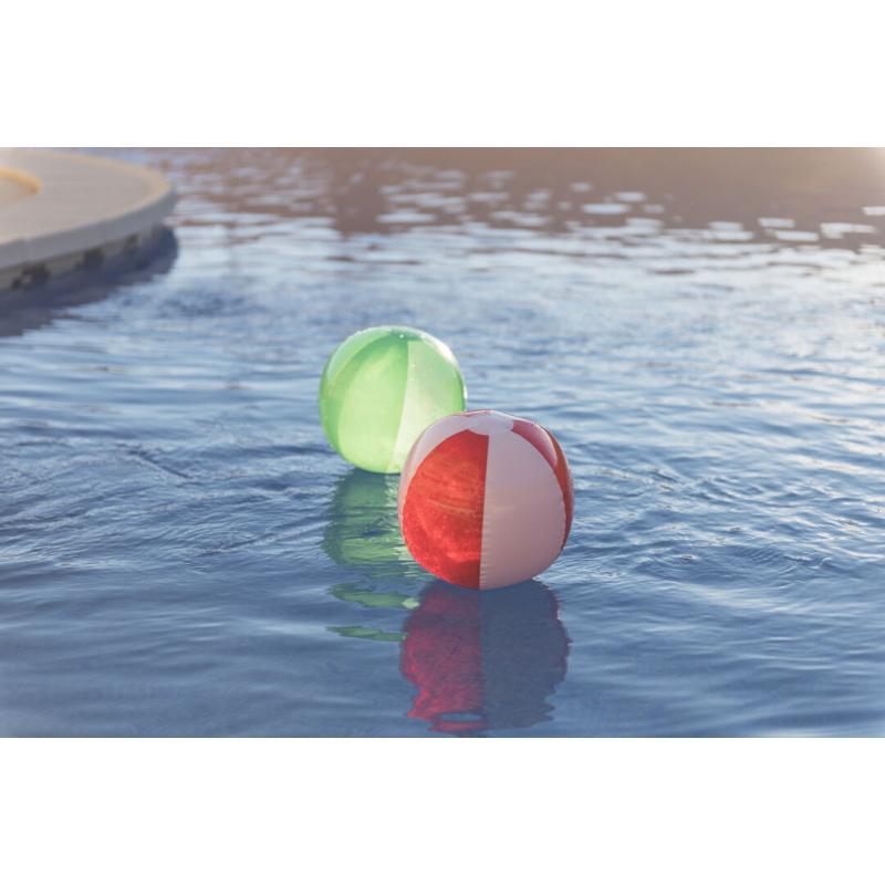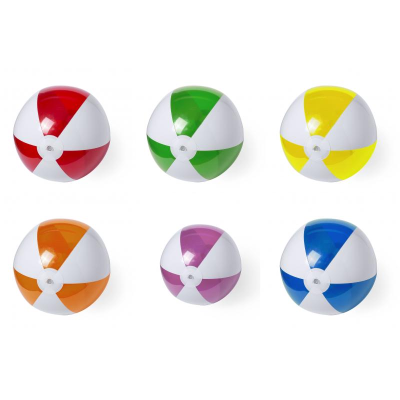 Balón inflable de PVC con diseño bicolor en combinación de paneles blancos y transparentes en vivos colores.