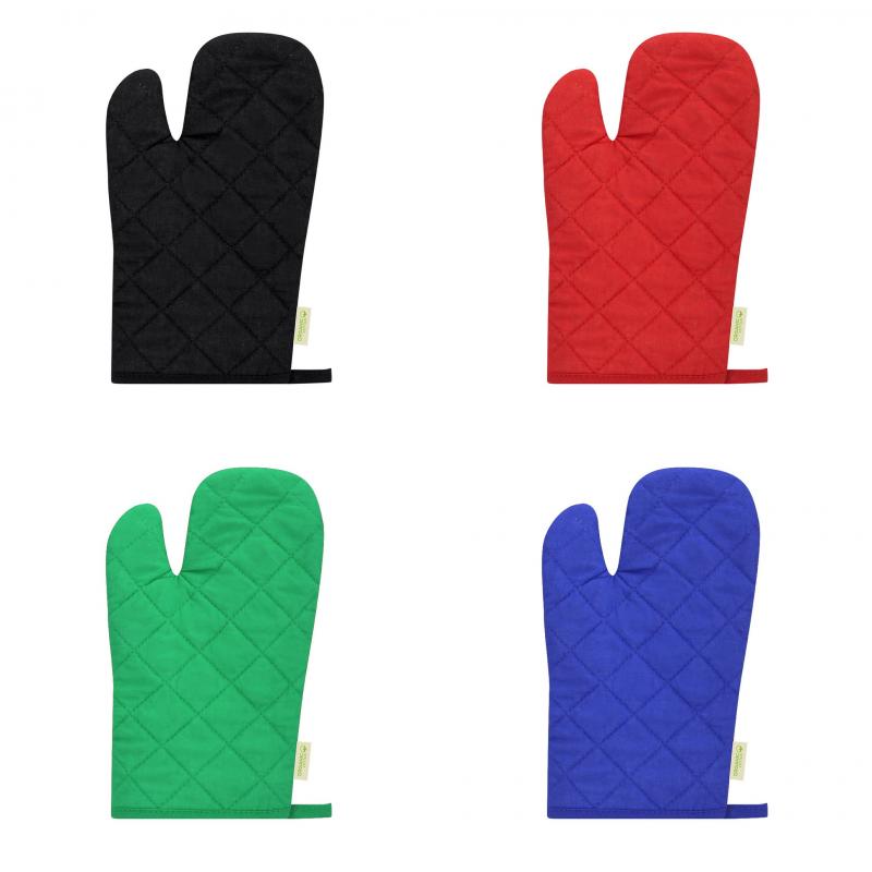 Manopla de algodón orgánico con recubrimiento de goma en la zona de agarre para mayor protección ante altas temperaturas. Incluye distintivo algodón orgánico.