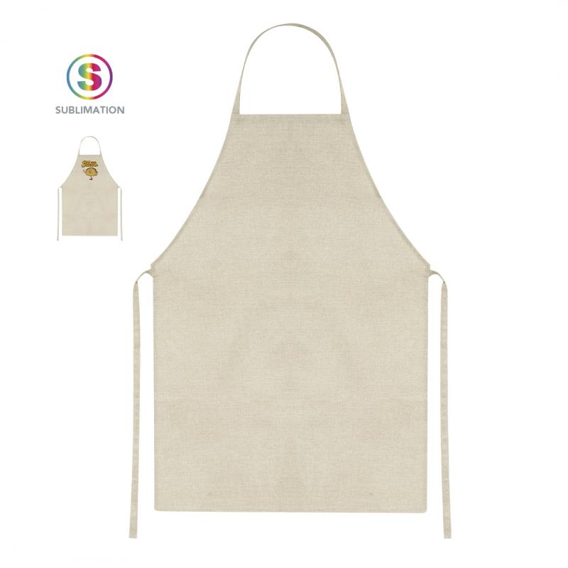 Delantal fabricado en suave y resistente poliéster, ideal para personalización mediante impresión por sublimación.