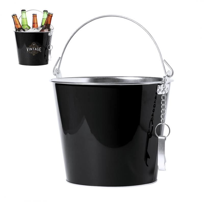 Cubo metálico de 6l de capacidad, con interior galvanizado y exterior disponible en variada gama de colores. Con asa, incluido abridor de aluminio y cadena en color plata.