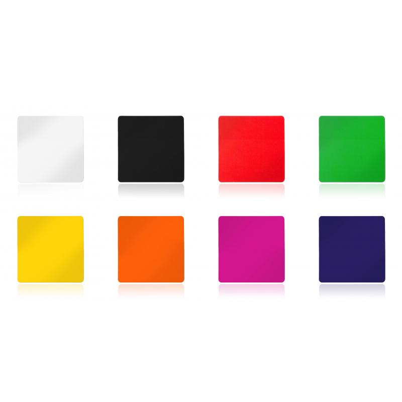 Imán de 6x6cm con superficie brillante en variada gama de vivos colores.
