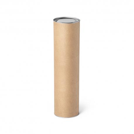 Caja cilíndrica de cartón FSC™ con tapa y fondo metálicos. Este producto está hecho de material certificado FSCᵀᴹ y otros materiales controladosRecipiente :