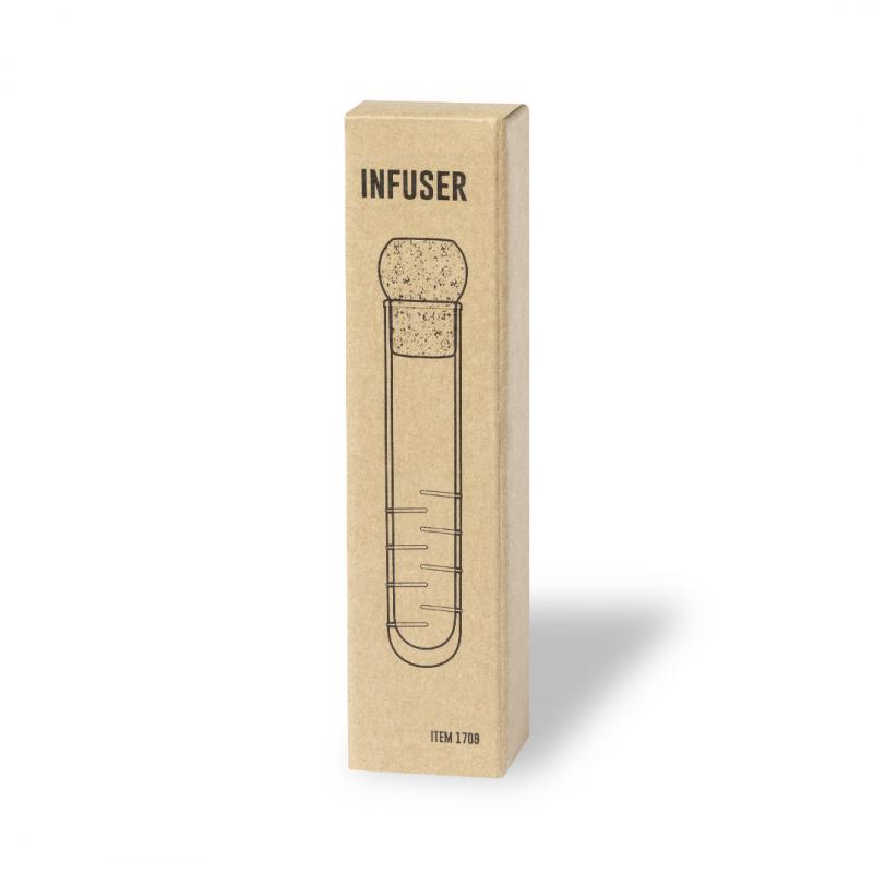 Infusor fabricado en cristal, con tapón en corcho natural. Presentación en caja individual de diseño kraft.