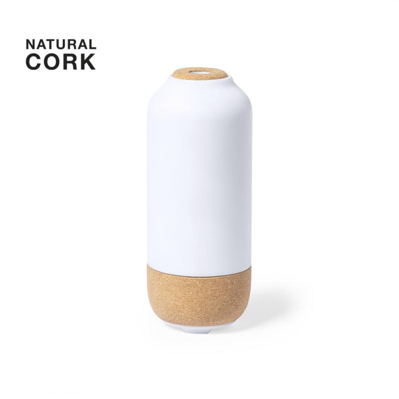 Elegante y decorativo humidificador, fabricado en resistente PP y base en corcho natural. Con 2 modos de vaporización y depósito de 200 ml, indicado para uso en estancias de hasta 25m2. Conexión USB, con cable Tipo C incluido de 1 m. Presentado en caja individual de diseño kraft, con manual de instrucciones en español e inglés y filtro de recambio.