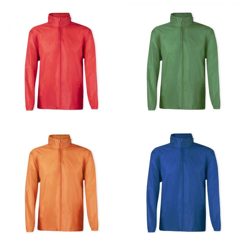 Impermeable en resistente poliéster 190T en variada gama de colores. Con capucha de cremallera integrada en cuello y cordones de ajuste, cierre principal de cremallera y bolsillos laterales. Disponible en tallas M-L, XL-XXL.