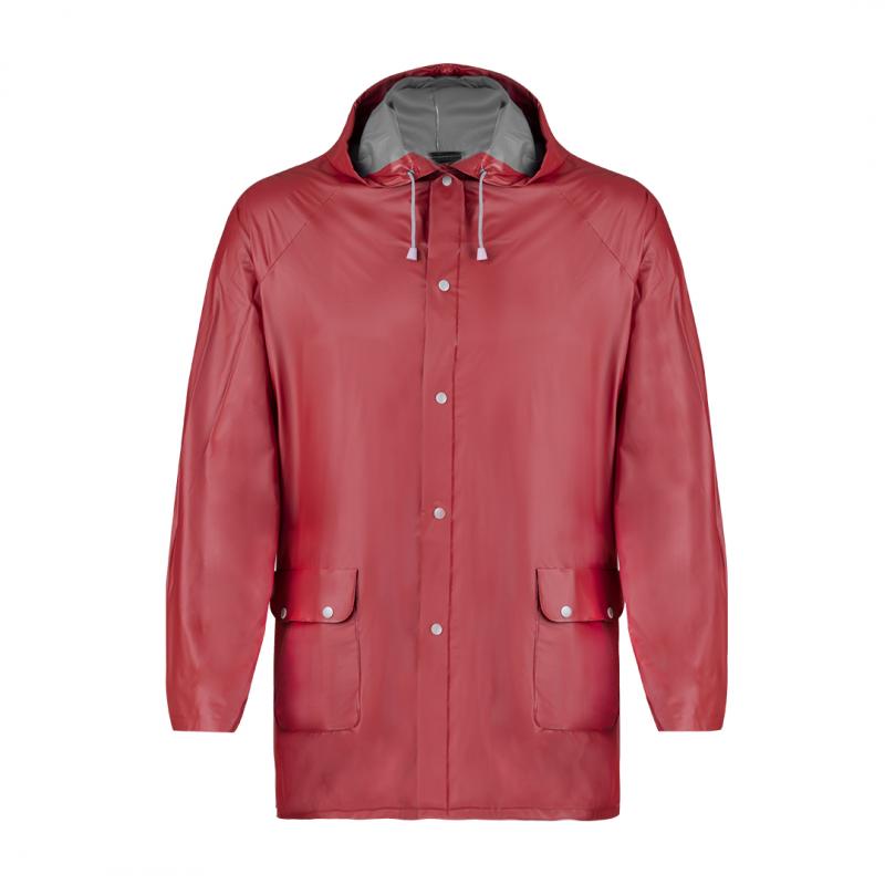 Impermeable en resistente PVC de acabado termosellado en variada gama de colores. Con capucha y cordones de ajuste, cierres de corchete y bolsillos. Disponible en tallas M-L, XL-XXL.