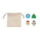 Set de 4 gomas de borrar con motivos navideños: en forma de copo de nieve, Papá Noel, árbol de Navidad y muñeco de nieve. Presentadas en bolsa de algodón.Recipiente :