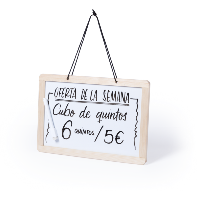 Pizarra para colgar de doble cara. Tradicional pizarra de tiza en una cara con 3 tizas incluidas + pizarra para rotulador en la otra cara -rotulador incluido-. Con borrador de doble cara para tiza o rotulador.