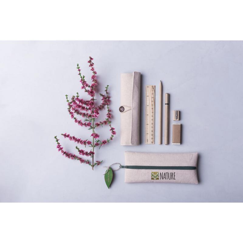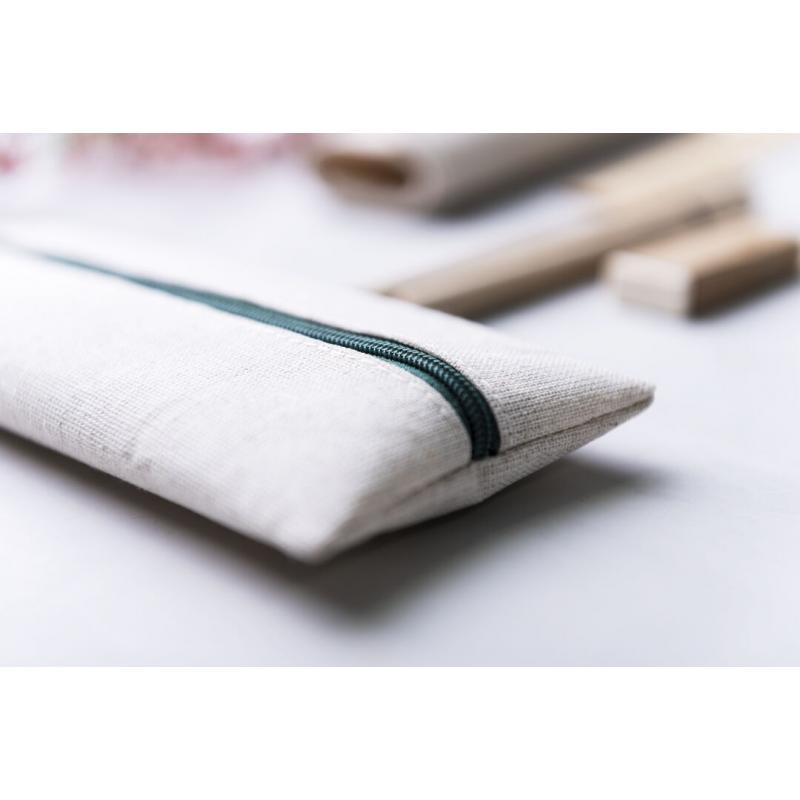 Práctico estuche de línea nature. De tamaño compacto en combinación de materiales yute y algodón. Con cierre de cremallera y hojita para publicidad en tirador.