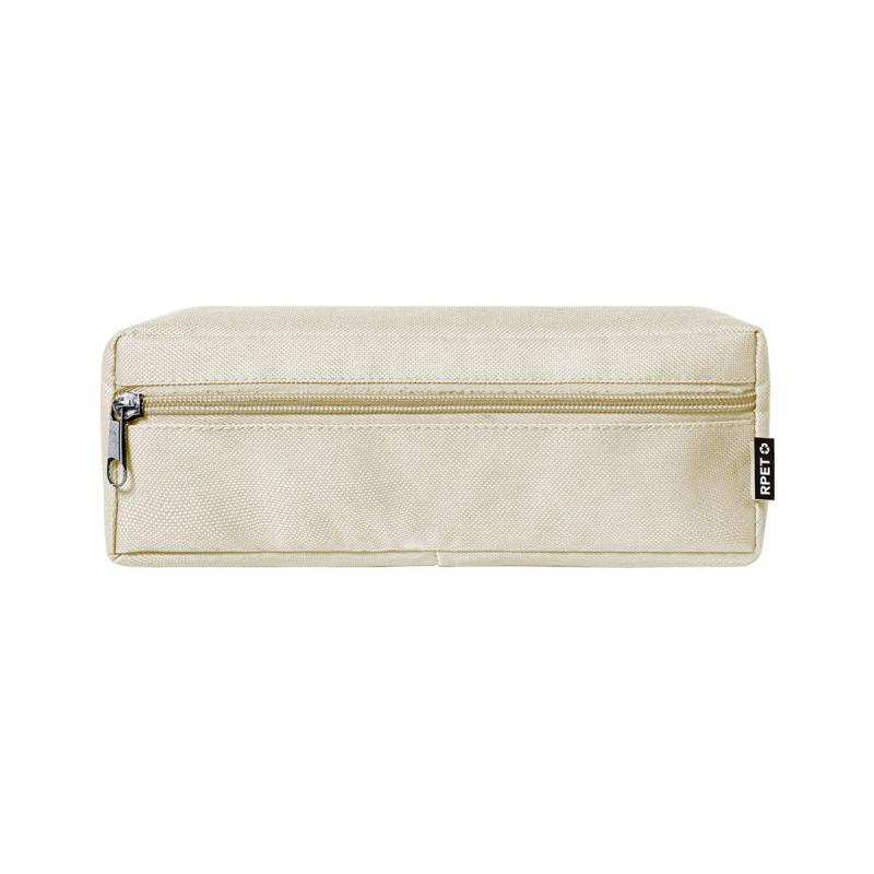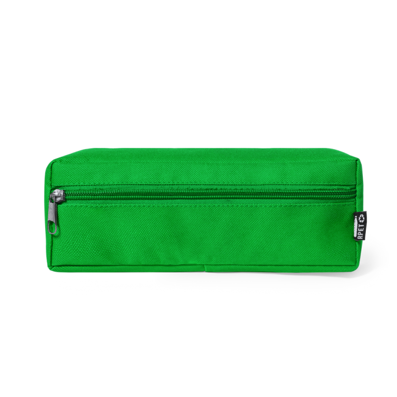 Estuche en resistente poliéster 600D RPET, elaborado a partir de plástico reciclado, para así fomentar la reutilización de residuos plásticos y ayudar a la sostenibilidad del planeta. Con cierre de cremallera en frontal y tirador metálico. Distintivo RPET en etiqueta.