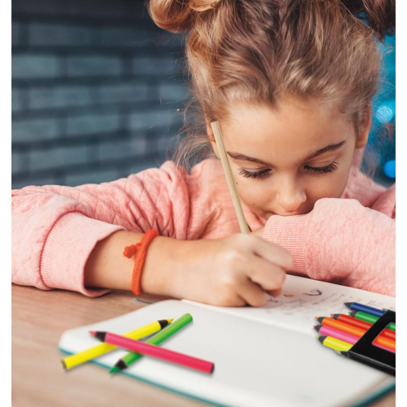 Caja con 6 pequeños lápices fluorescentes de madera para colorearRecipiente :