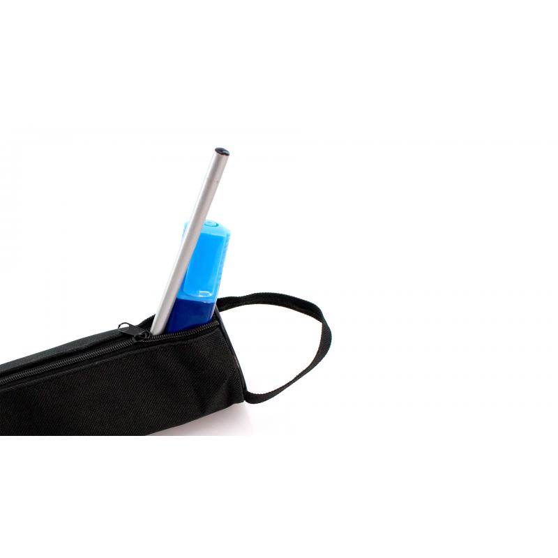 Clásico estuche de cremallera y diseño cilíndrico en resistente poliéster 600D. Con práctica asa de transporte y cremallera a juego.