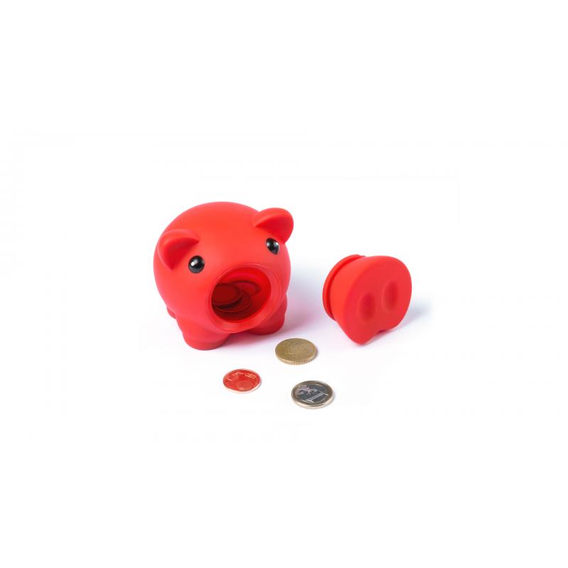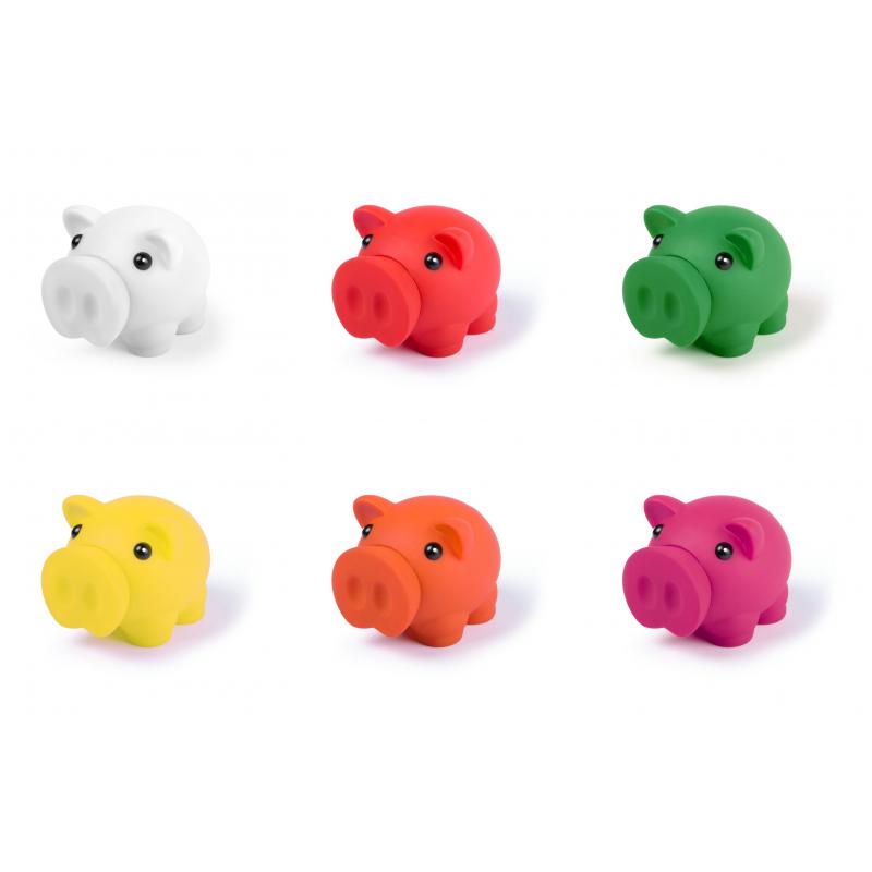 Hucha cerdito con suave cuerpo de acabado goma en vivos colores.