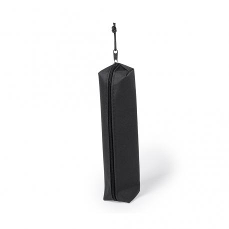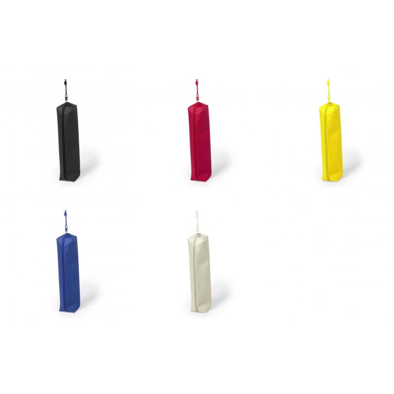 Estuche en resistente poliéster 600D en variada gama de vivos colores. Con cierre de cremallera y tirador a juego para fácil apertura.