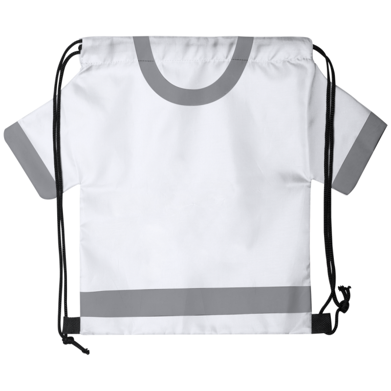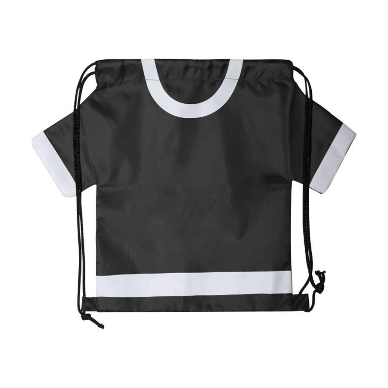 Original y divertida mochila de cuerdas para niños en forma de camiseta. En suave poliéster 210D, con cuerdas autocierre en color negro y esquinas reforzadas. disponible en variada gama de colores intensos.