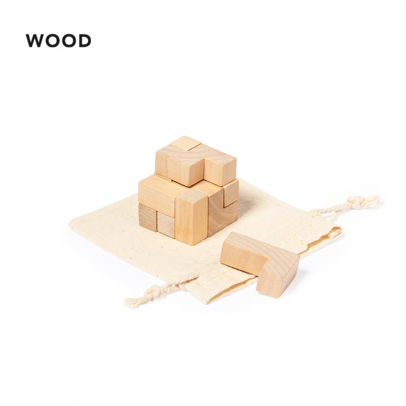 Juego de habilidad de 7 piezas para los más creativos, presentado en una resistente funda de algodón con cierre de cordón.