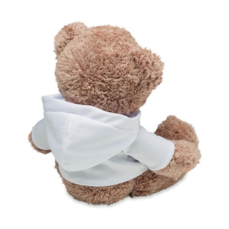 Osito de peluche grande que lleva una sudadera con capucha. Ideal para la impresión en sublimación.