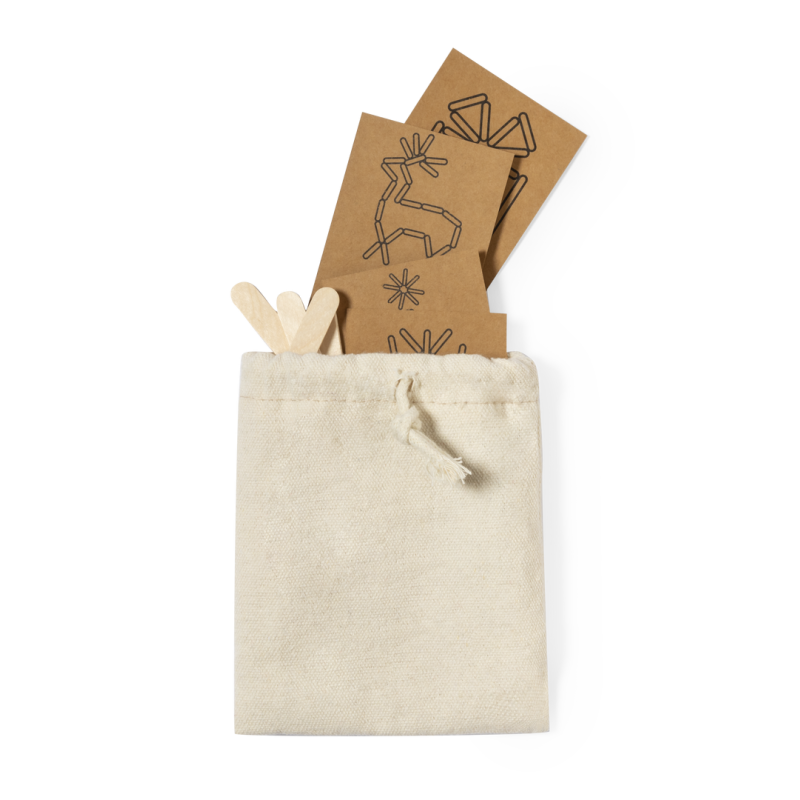Original juego de habilidad que consiste en construir correctamente las figuras presentadas en las tarjetas visuales con las diferentes piezas del juego. Un divertido juego con el que fomentar la agilidad mental. Incluye 36 piezas de madera natural en diferentes tamaños para construir las figuras(8 largas y 28 cortas) y 4 divertidos diseños de estrellas con tarjetas visuales en cartón reciclado. Presentado en bolsa 100% algodón.Elaborado con elementos vegetales para así fomentar la utilización de materias primas naturales y reducir las emisiones contaminantes.
