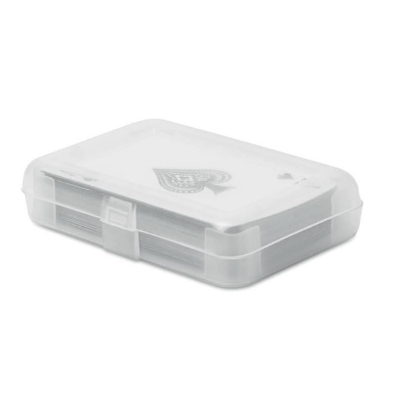 Baraja francesa de 54 cartas, presentada en caja de plástico transparente PP.