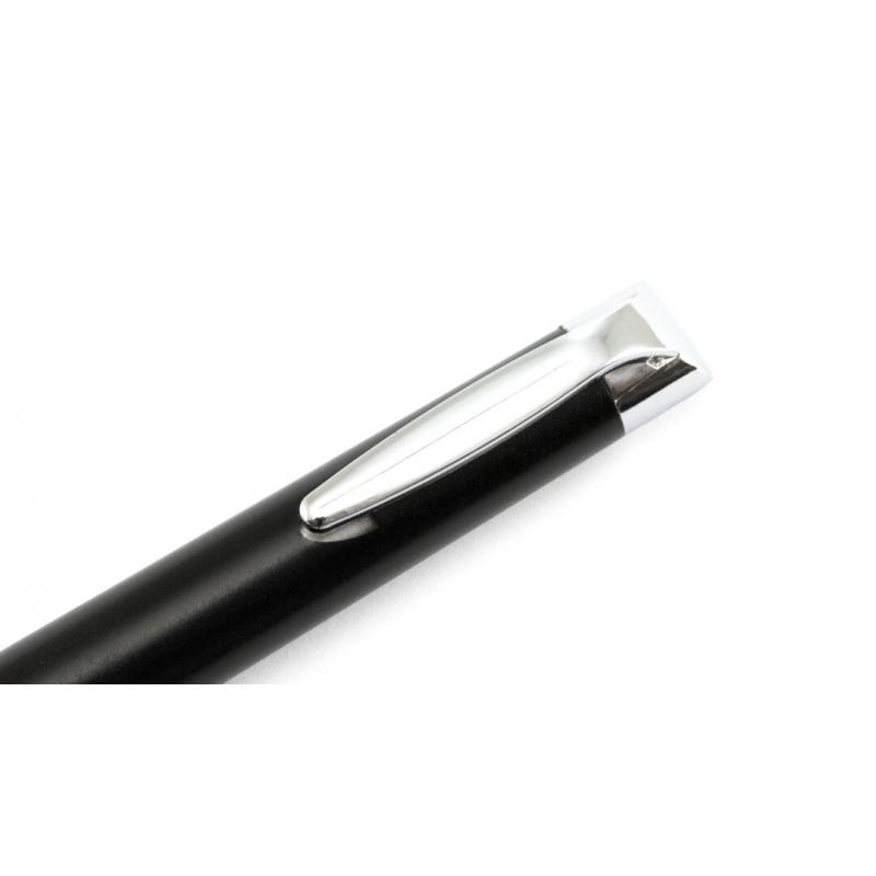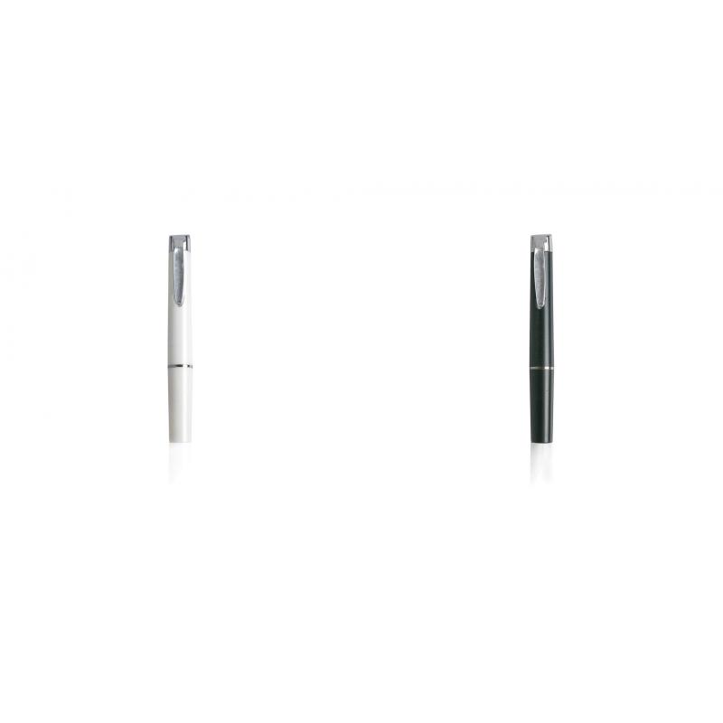 Linterna LED con suave cuerpo en sobrios colores. Con mecanismo de activación en clip metálico.