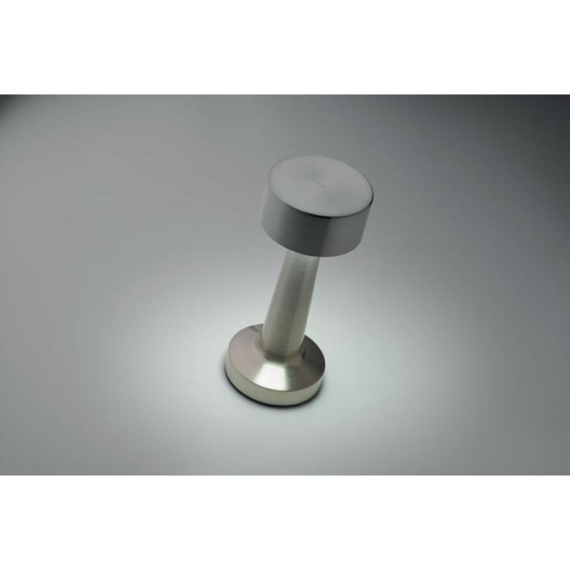 Lámpara de sobremesa de hierro con 12 luces LED, regulación continua, 3 modos de luz y control táctil. Batería recargable de iones de litio de 1200 mAh. 6 horas de autonomía tras una carga completa. Incluye cable de carga.Recipiente :