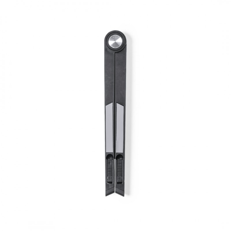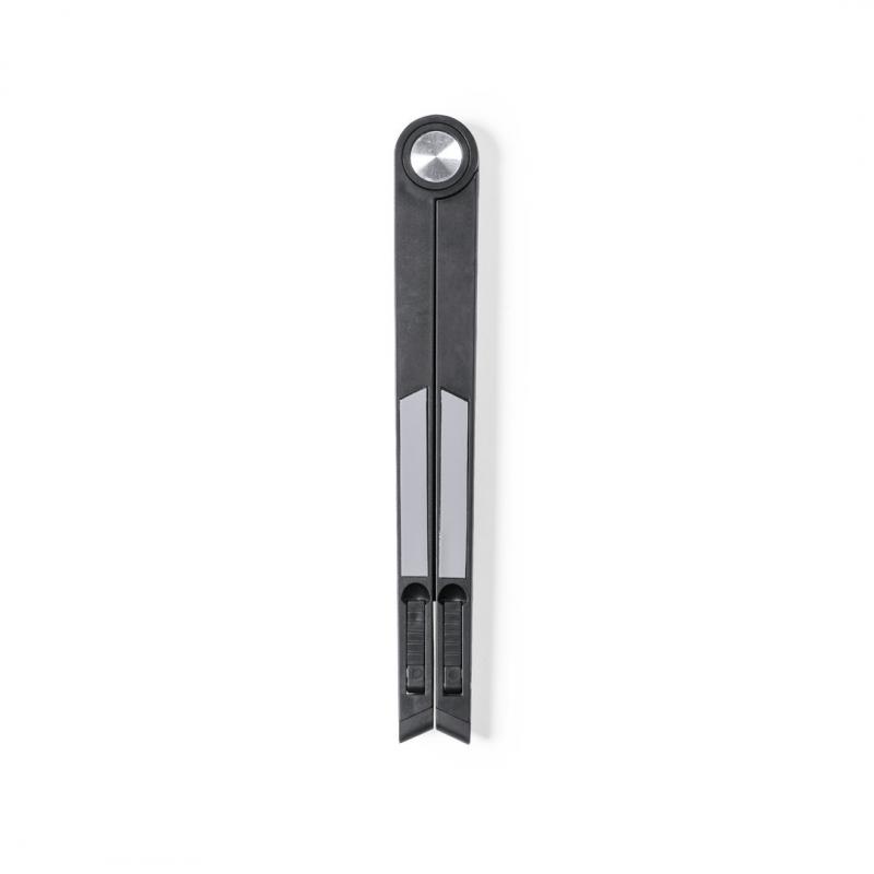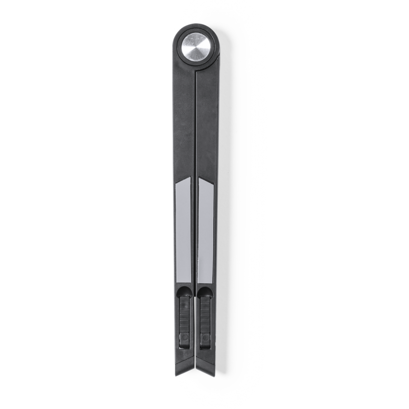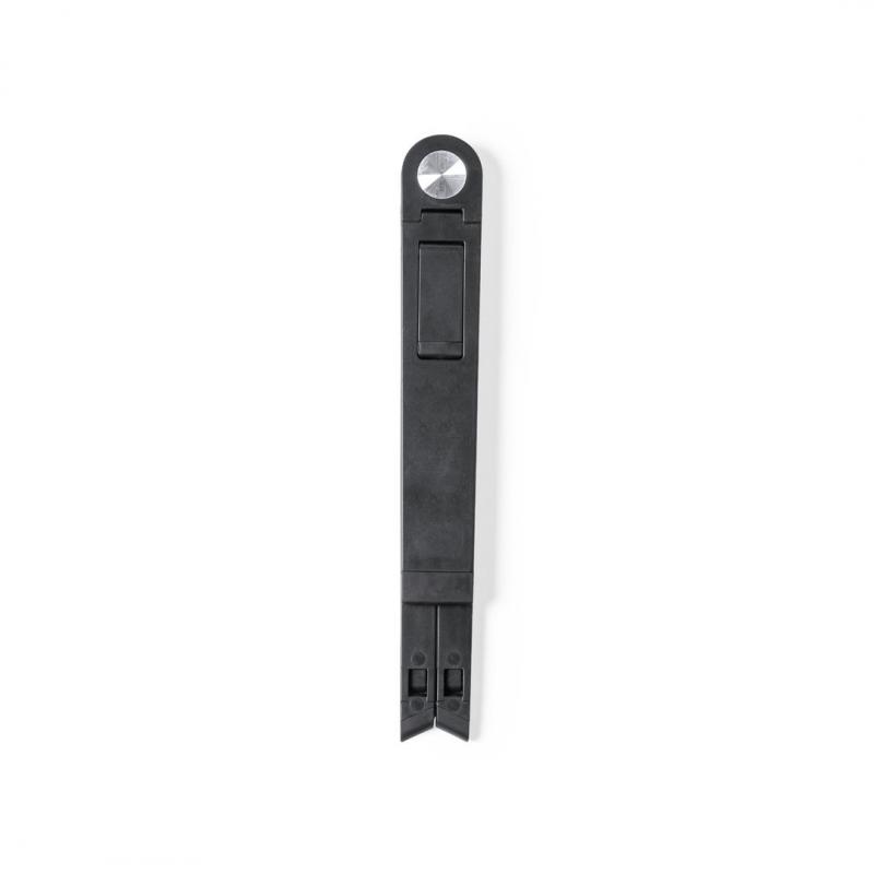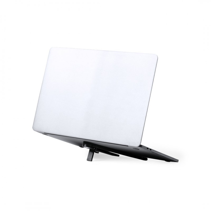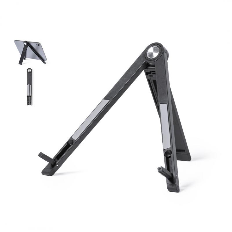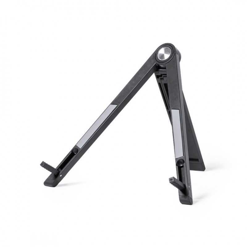 Original soporte plegable para dispositivos móviles y ordenador portátil de hasta 13", fabricado en resistente material ABS. Con dos posiciones de visionado y plegado de pequeño tamaño para un fácil transporte.